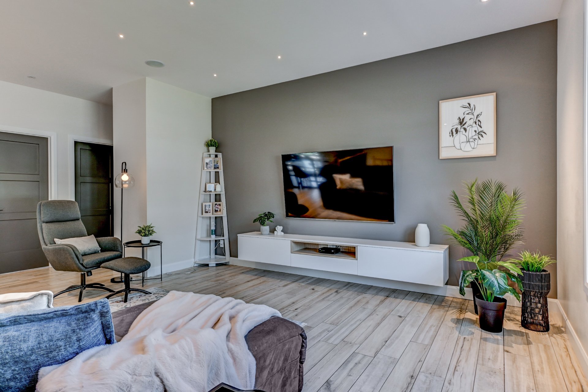 -Planchers de béton chauffant, uréthane sous le béton -Immense salle familiale avec espace bar complet -Une chambre avec walk-in, possibilité d'en aménager 1 ou 2 autres selon les besoins