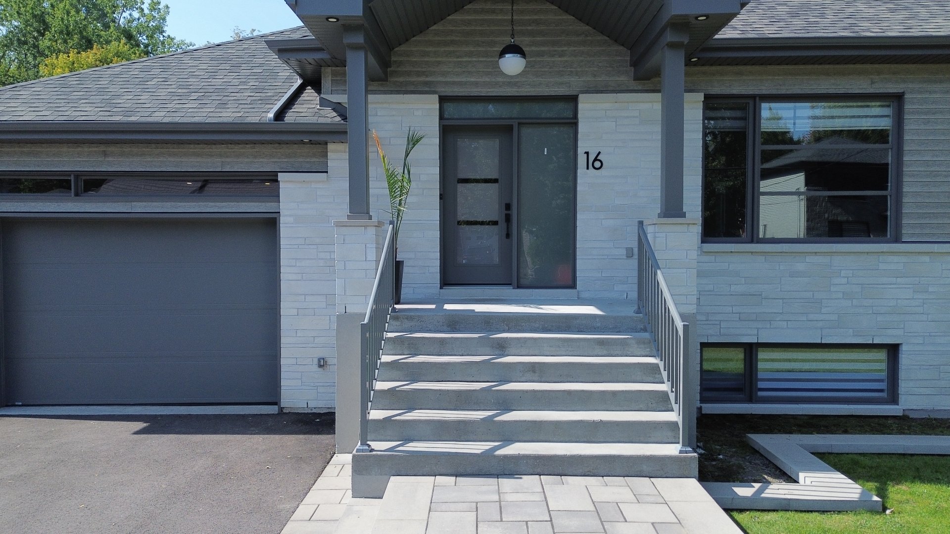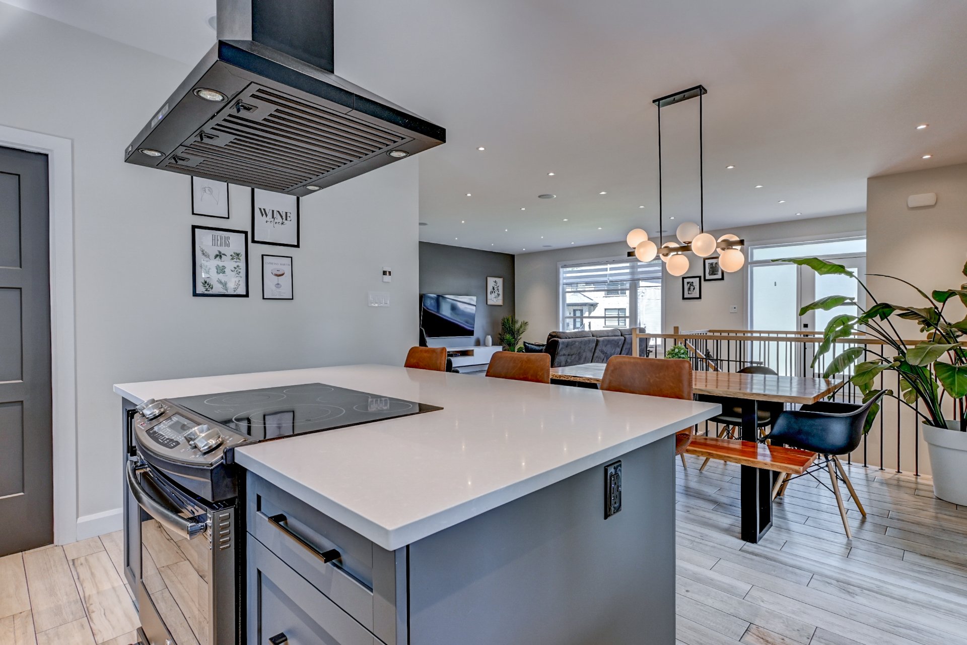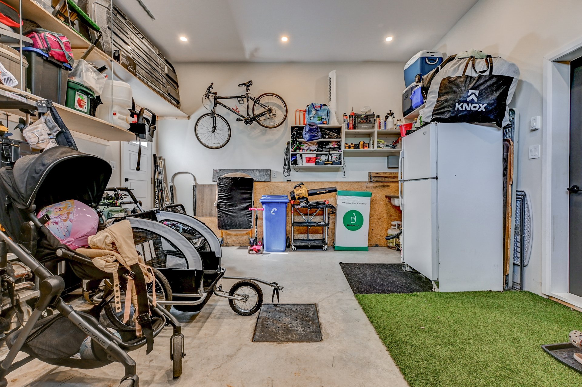 -2 rangements aménagés-Garage de 16 pieds de large -Balcon avant et arrière chauffants ... fonte de neige assurée et faites du BBQ pied nu en hiver !!!