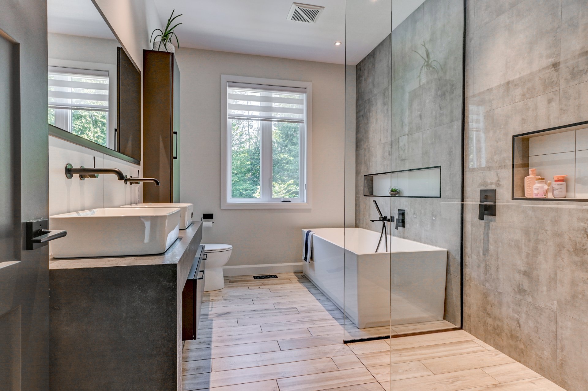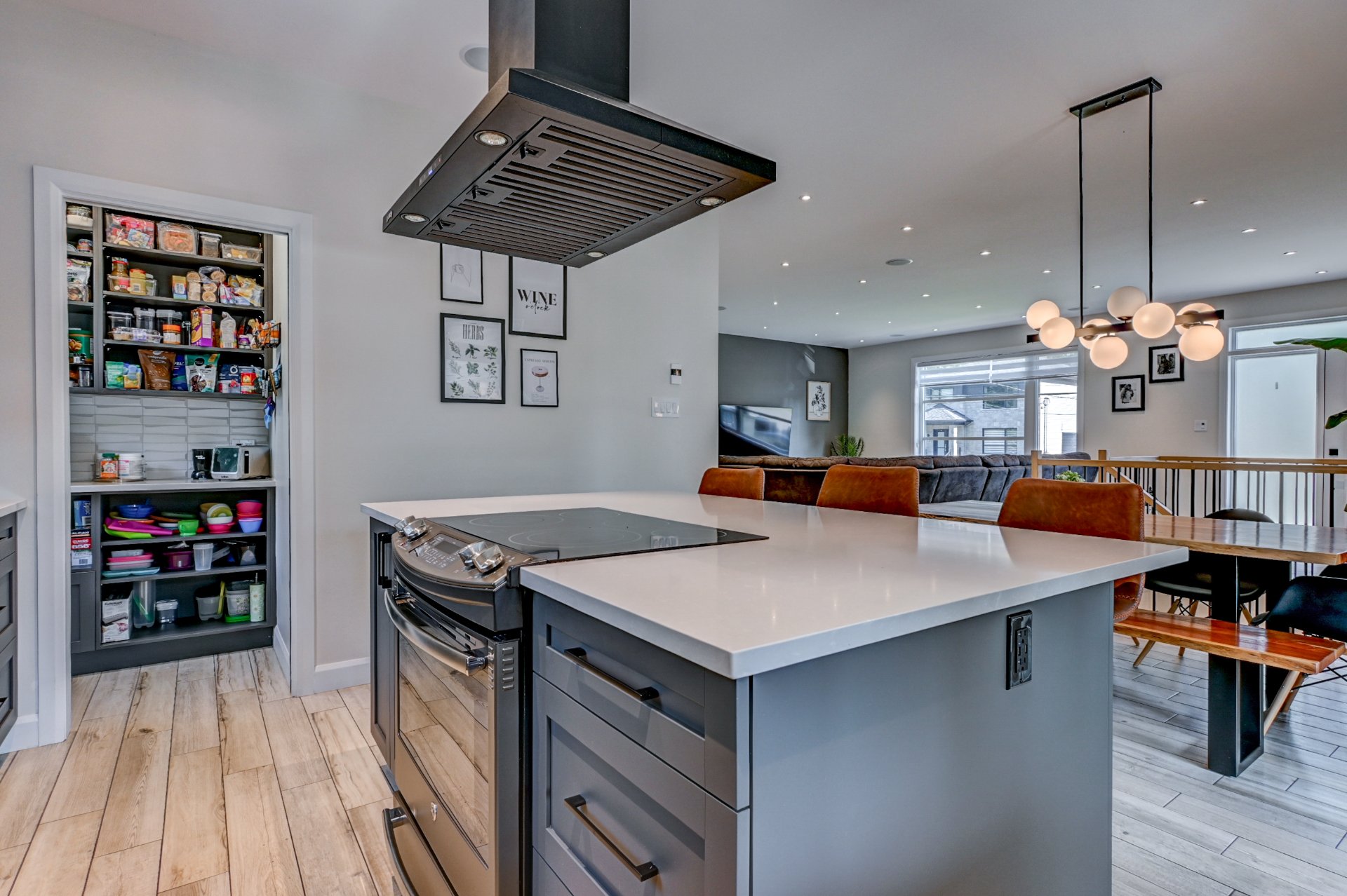 -Planchers de céramique chauffante dans les aires ouvertes et la salle de bains, les chambres ont un plancher de bois, plusieurs encastrés dans toute la maison -Hall d'entrée avec rangement walk-in, escalier qui mène au garage et au sous-sol -Grande aire ouverte aux plafonds de 9 pieds, salon surdimensionné -Cuisine avec ilot et garde-manger walk-in, salle à manger -Chambre principale munie d'un walk-in -Chambre secondaire d'une bonne dimension -Bureau qui pourrait être une chambre d'enfant -Salle de bains avec une douche à l'italienne, deux éviers, robinets muraux et bain autoportant