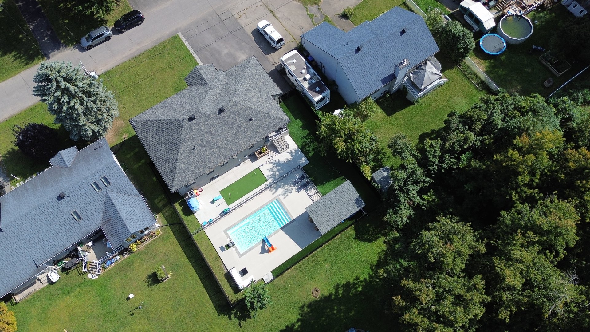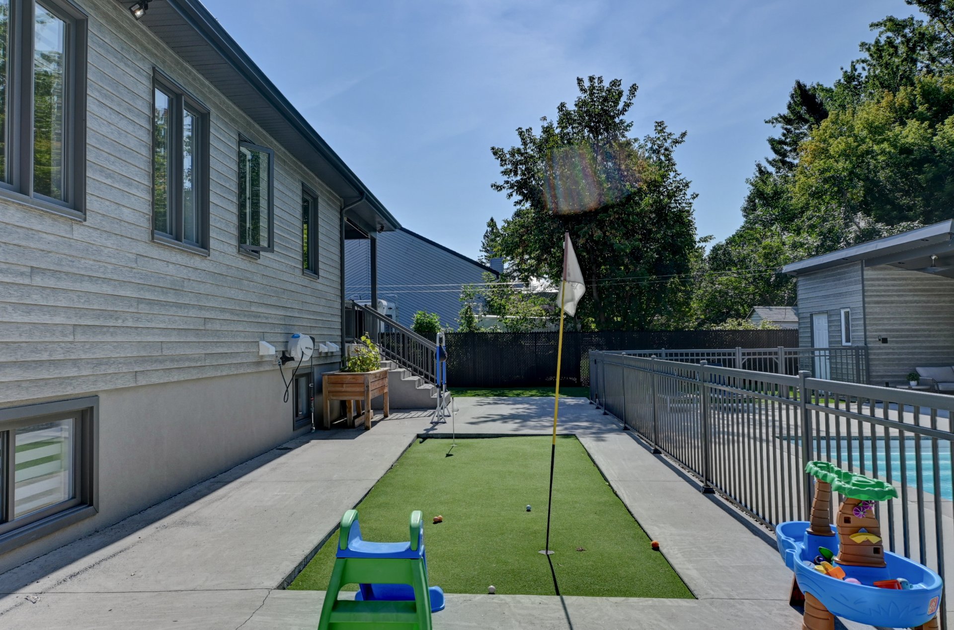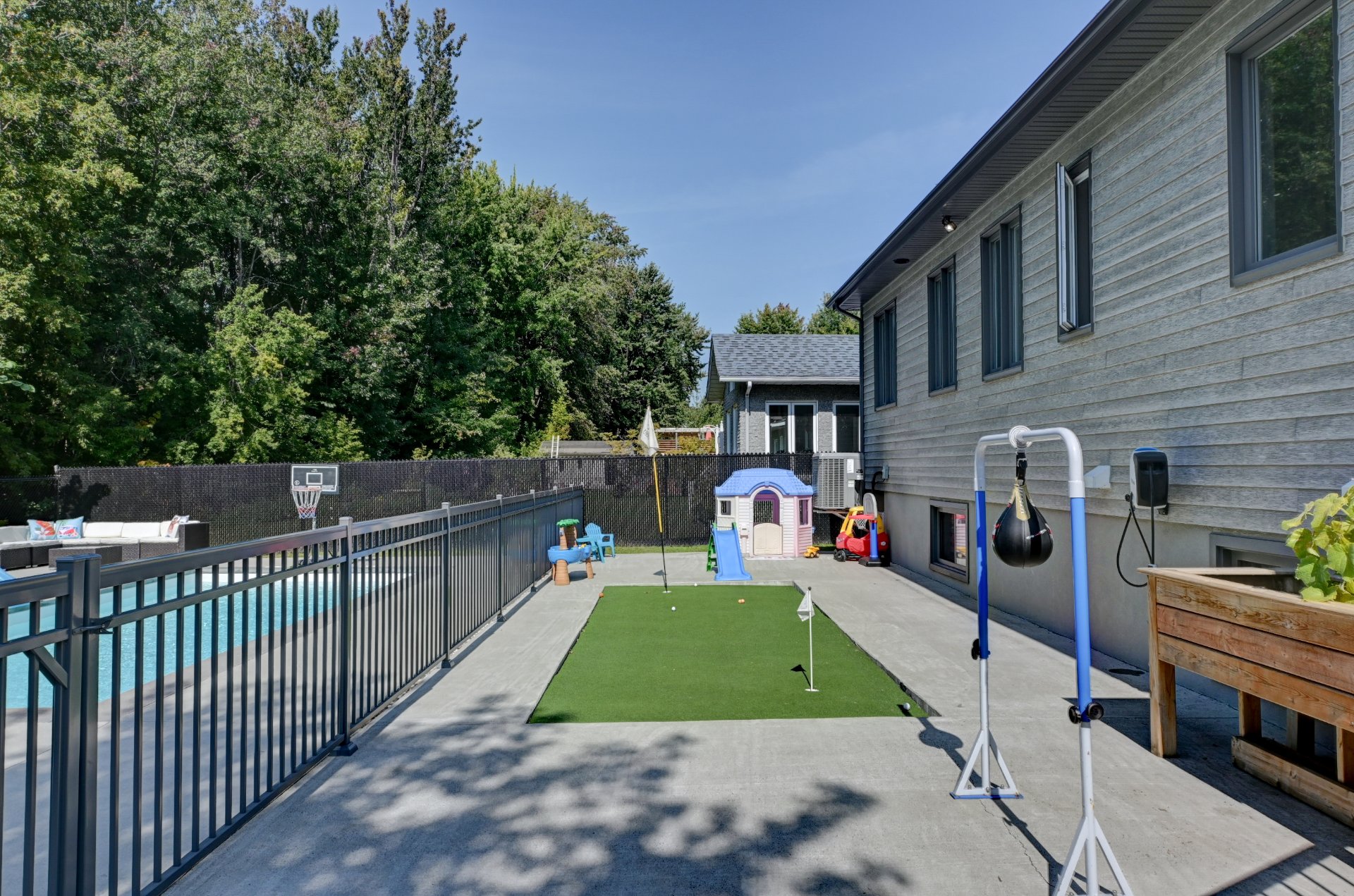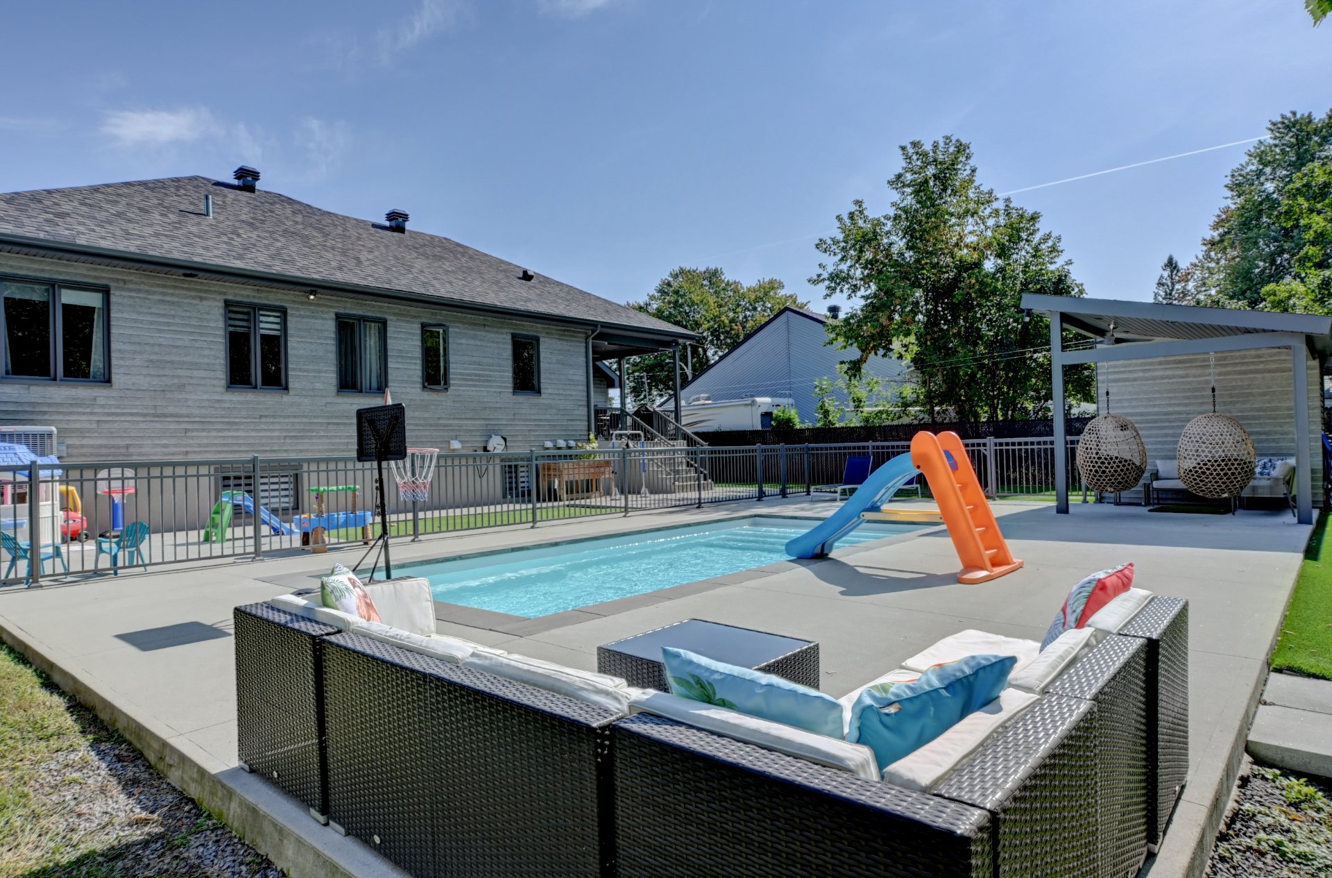 -Terrain adossé au Parc de la Frayêre pour profiter de la nature et marcher dans ses sentiers -Balcon couvert qui mène à la cour -Terrasses et gazon synthétique où vous pouvez pratiquer votre putting -Piscine clôturée chauffée -Cabanon de 10'x10' avec prolongement de 10' pour le salon extérieur avec éclairage