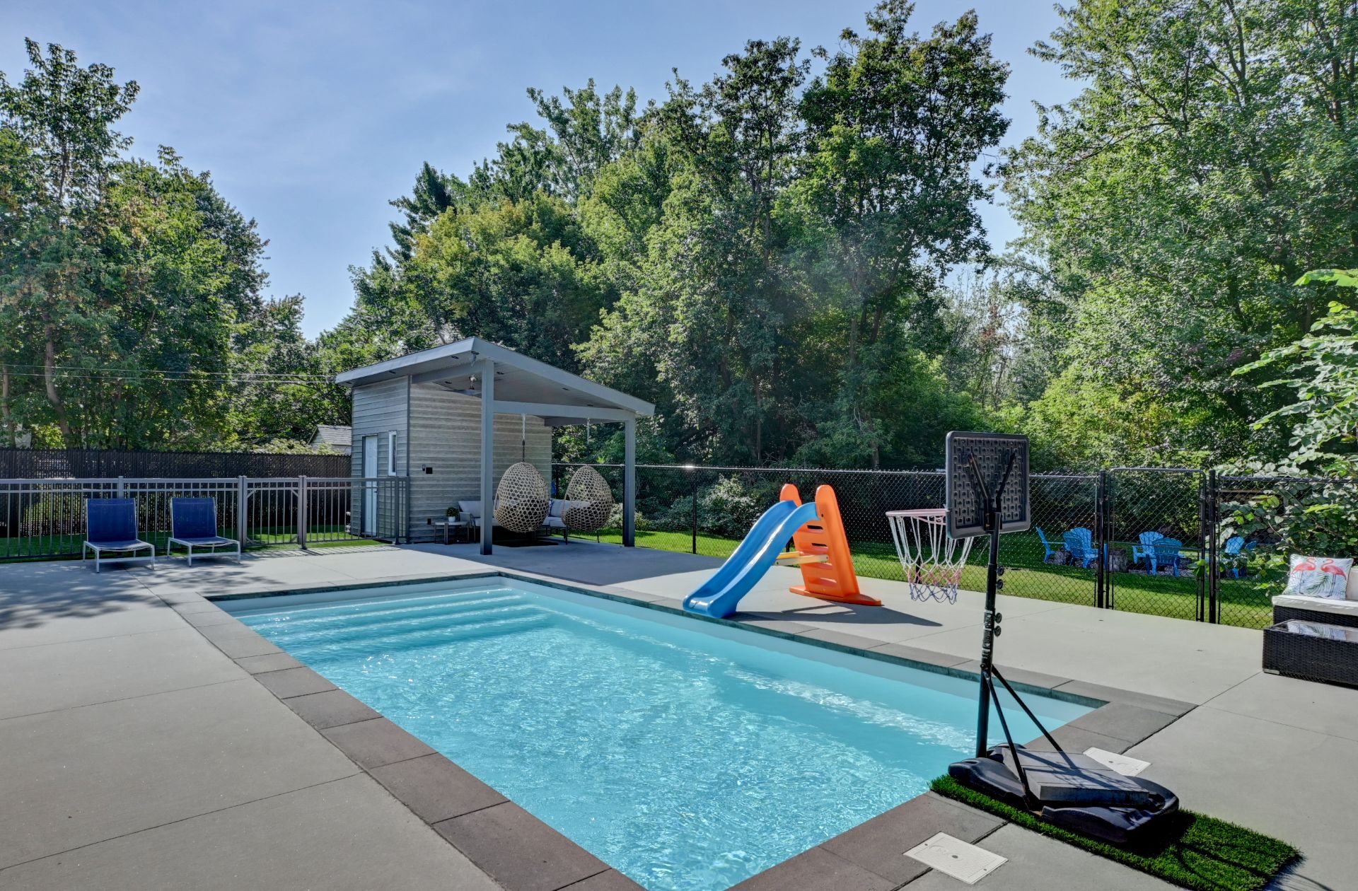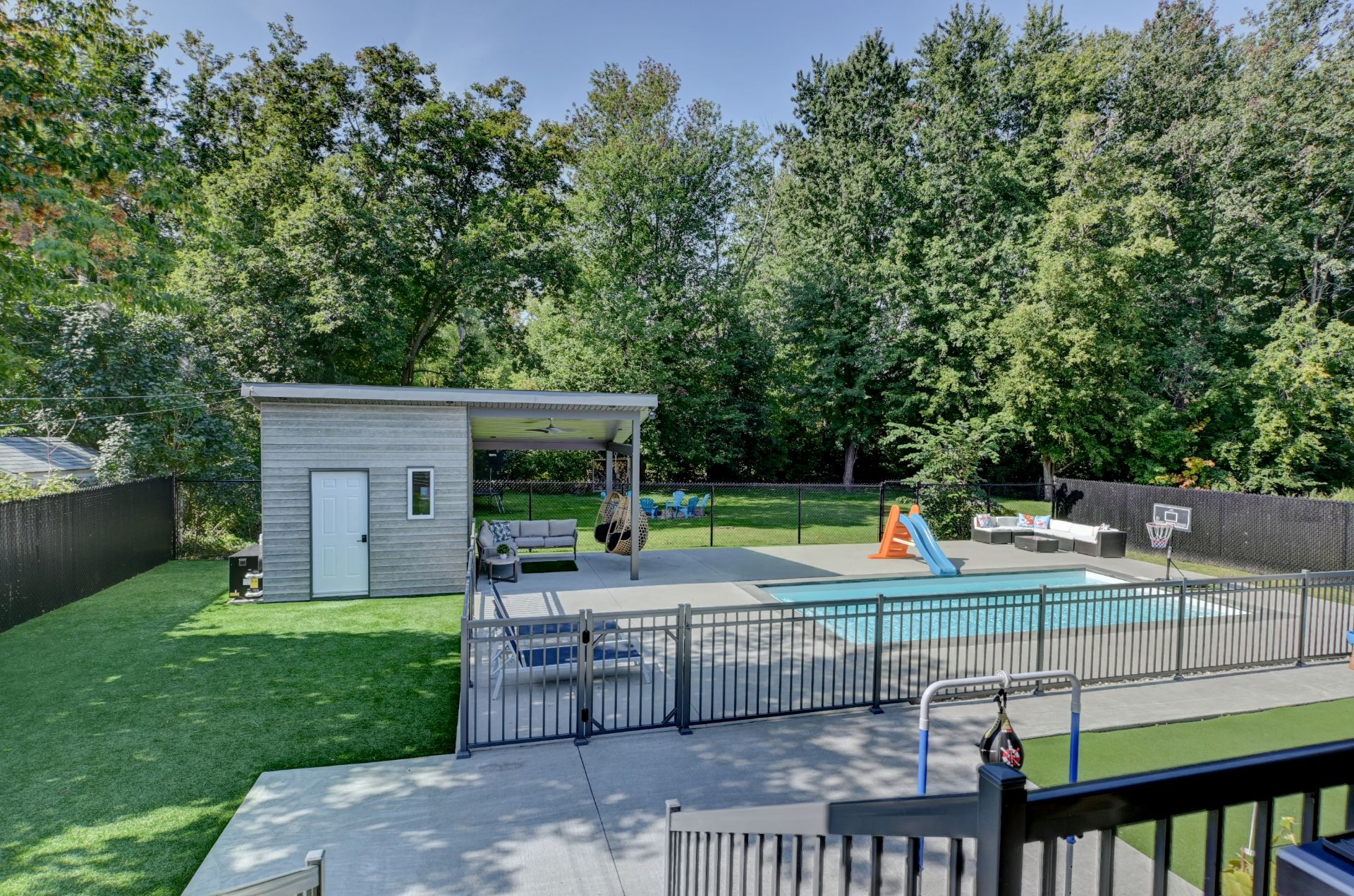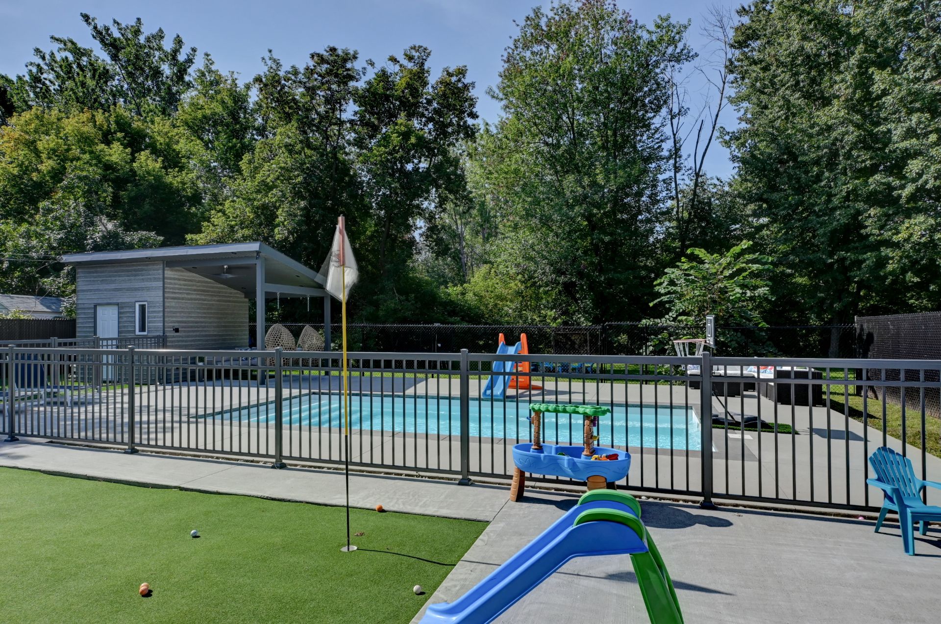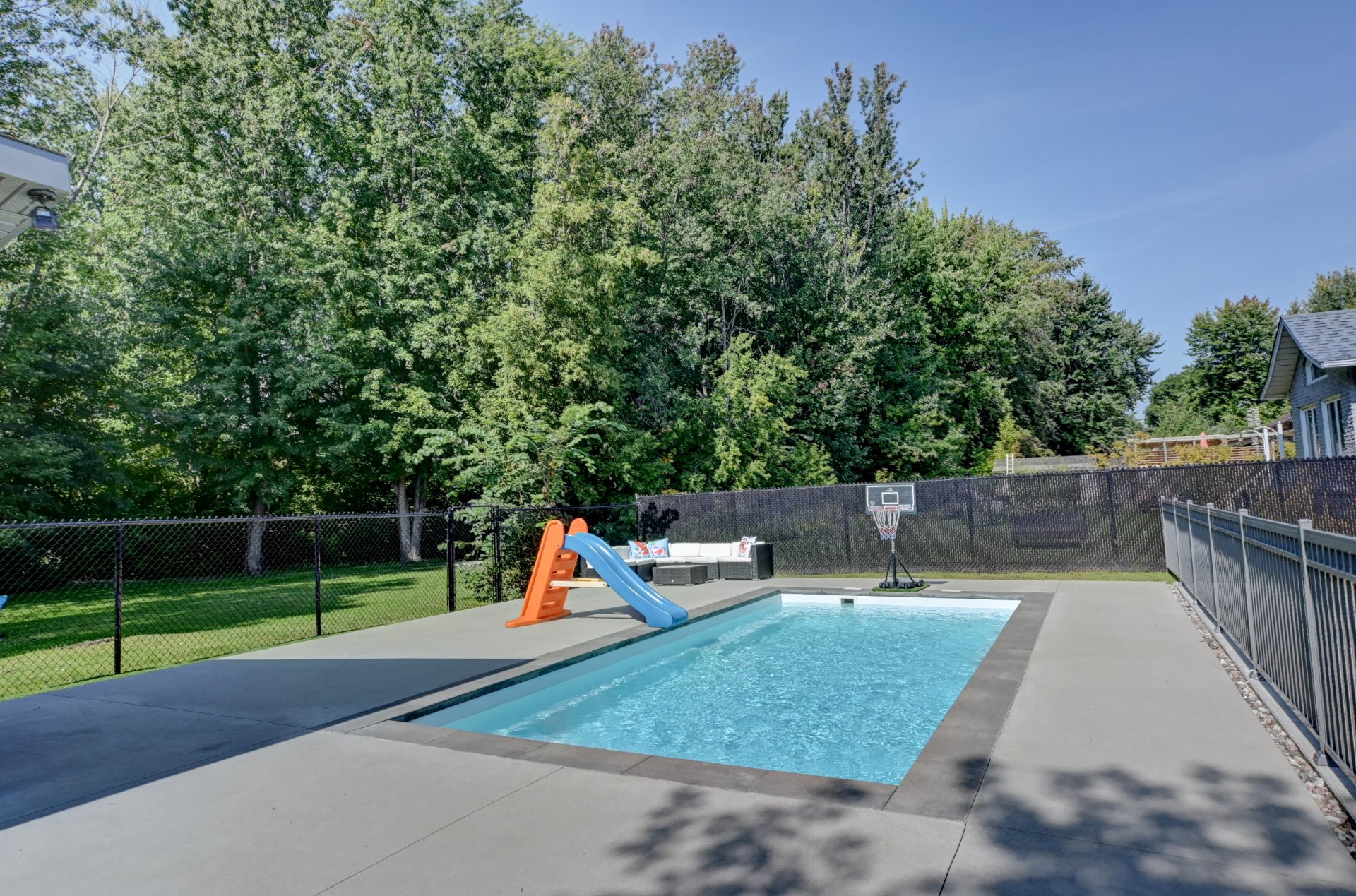 -Terrain adossé au Parc de la Frayêre pour profiter de la nature et marcher dans ses sentiers -Balcon couvert qui mène à la cour -Terrasses et gazon synthétique où vous pouvez pratiquer votre putting -Piscine clôturée chauffée -Cabanon de 10'x10' avec prolongement de 10' pour le salon extérieur avec éclairage
